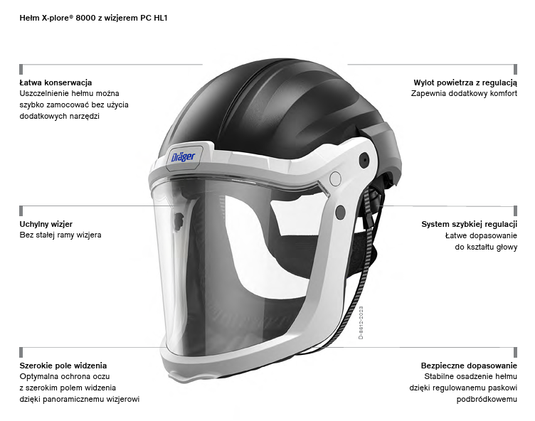 Hełm Drager X-plore 8000 z wizjerem PC HL1 (3729120)Hełm Drager X-plore 8000 z wizjerem PC HL1 – zaawansowany hełm ochronny